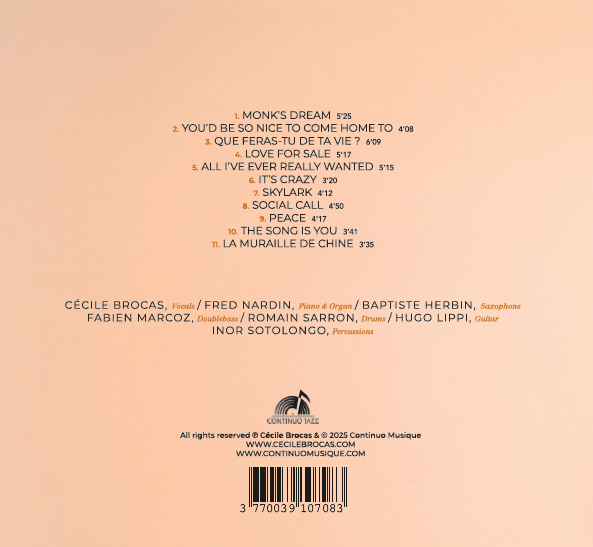 Cécile Brocas, chant – Fred Nardin, piano et orgue – Baptiste Herbin, saxophone – Fabien Marcoz, contrebasse – Romain Sarron, batterie – Hugo Lippi, guitare – Inor Sotolongo, percussions.